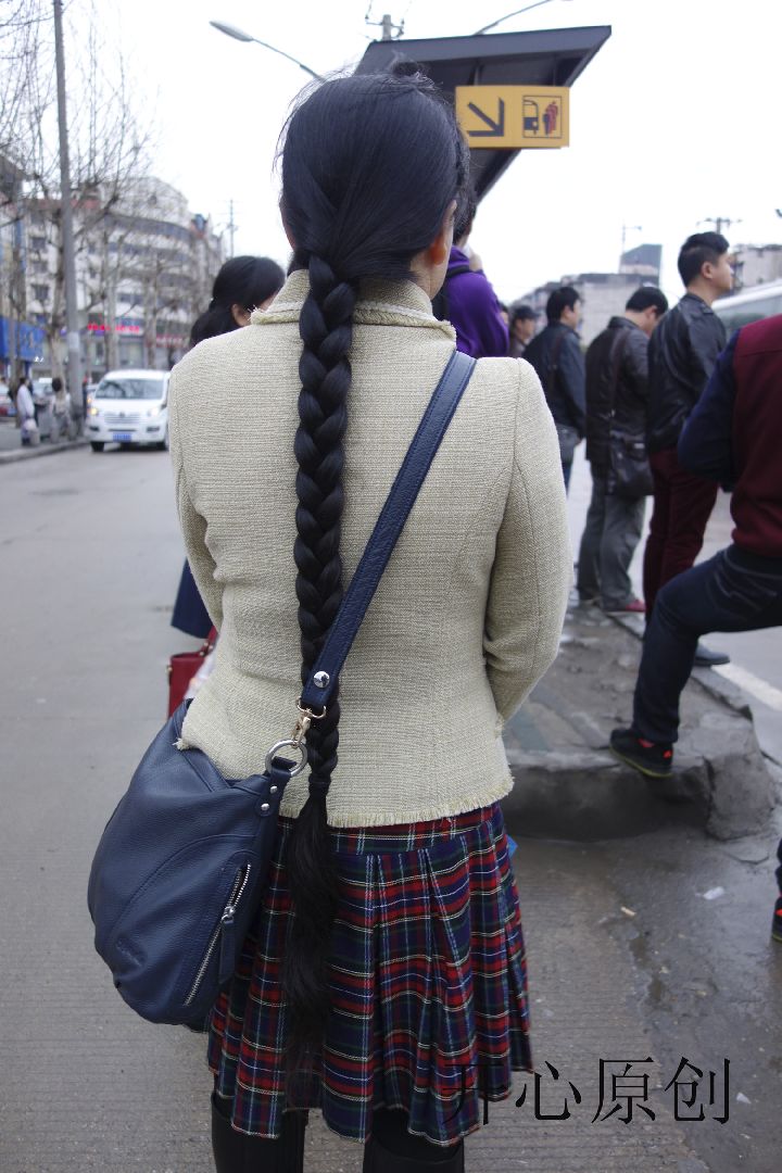 街拍粗黒的大辫子