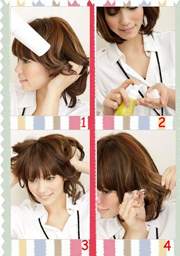 Step 1:将乳状造型品涂抹在八成干的头发上。