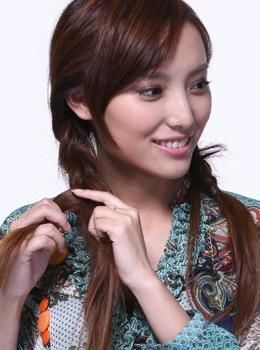 2、辫子随意分成两半,一定不要露出明显发缝。