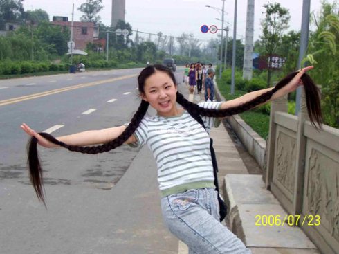 在成都赛区海选的参赛选手中,我们惊奇的发现了一位名叫龙璇的超级长发美眉。她的一头乌黑秀发瀑布般一直下垂到双膝,使所有选手和评委眼前一亮。据说她自出生以来从未剪短过自己心爱的长发。然而她却并不认为拥有一头秀丽长发是她参加比赛的全部砝码,她真正希望的,是用自己的才艺和气质征服所有的评委及观众。