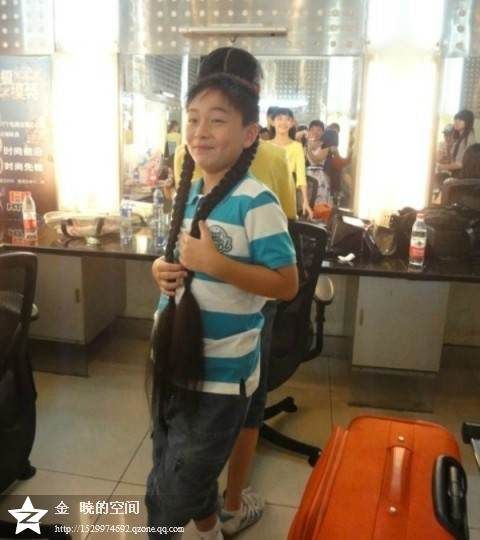 为了在赛场有一个好的表现,我就小学五年的知识来了个全面大梳理,从拼音到古诗,从词语积累到文章作者,可谓是面面俱到(就是不知道用得上啵)。好不容易到了下午四点钟,我穿上那件小得可以的裙子,直奔电视台的化妆间。看着我那又多又长的秀发,发型师决定要把我的长发展示到全国的观众面前,好好SHOW一把,于是便把我打造成一个超级美少女的样子:两根散开的辫子被高高卷起,留下垂腰的一大截,前面梳了四根细长的麻花辫。我对这个造型还是挺满意的!